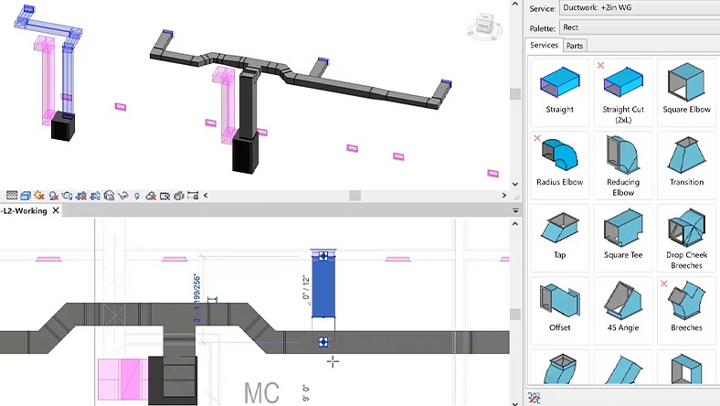 Easily convert a design intent model into a fabrication-ready model, using Revit, for overall time savings and improved quality. Expedite the detailing process with automation features to connect MEP systems engineering, design and detailing workflows across the lifecycle of projects.