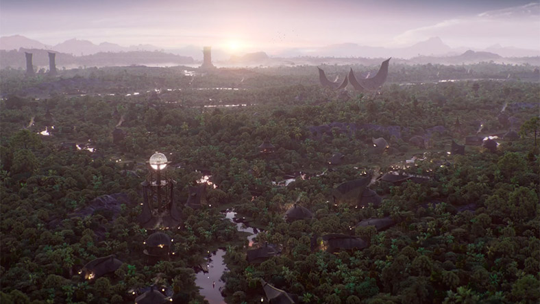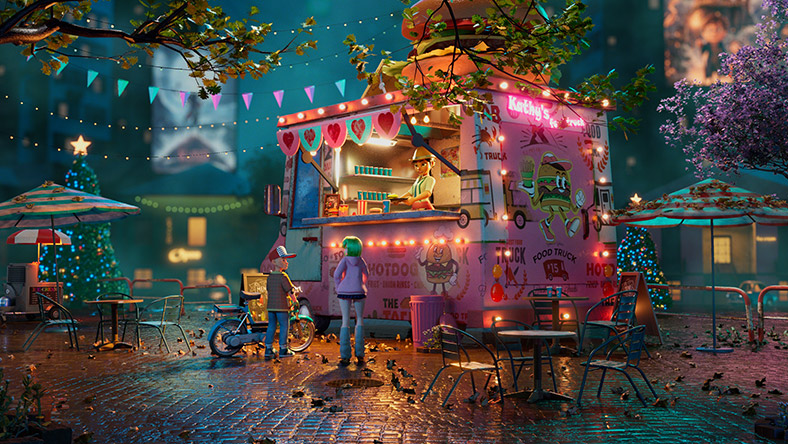 Use expressive scattering and instancing tools to create intricate, large-scale environments for world-building or set dressing.
