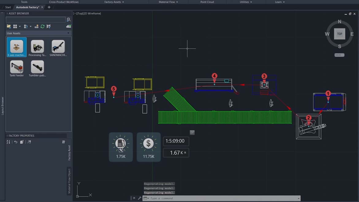 Autodesk Factory Design Utilities is used to design and simulate your factory layout for optimal efficiency and throughput. It offers better collaboration with 3D virtual walkthroughs for key stakeholders and helps you to stay on time and on budget during the installation and commissioning of your equipment.