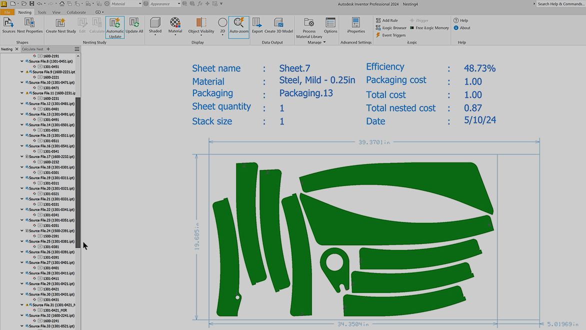 Autodesk Inventor Nesting software helps reduce cost while optimizing yield from flat raw material.