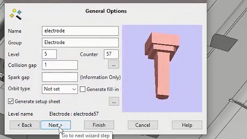 Automate electrode design for EDM. Add clearance, extensions, holder geometry, and spark gaps.