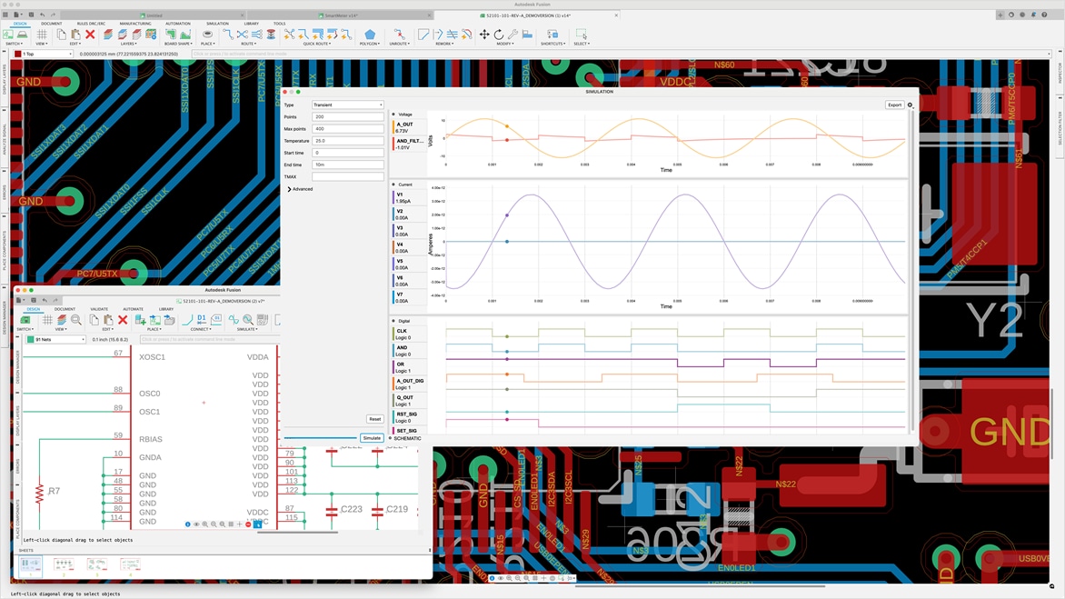 The advanced circuit design tools in Fusion include real-time design validation, 3D visualization, and simulation capabilities, making it easy to go from design to manufacture.