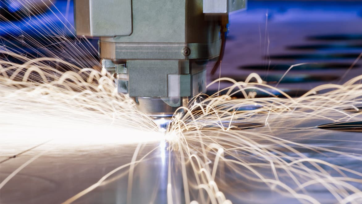 A gas laser, such as a CO2, is transmitted through a beam, guided by mirrors, and directed at the material at an extremely high level of precision.