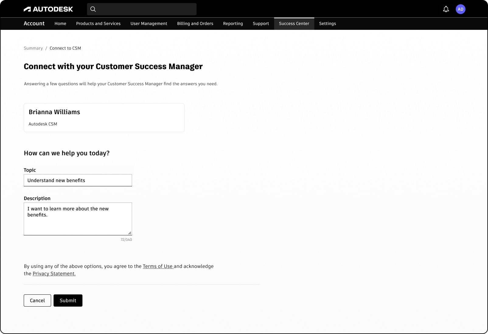 Go to the Success Center in your Autodesk account, signing in if you haven't already.